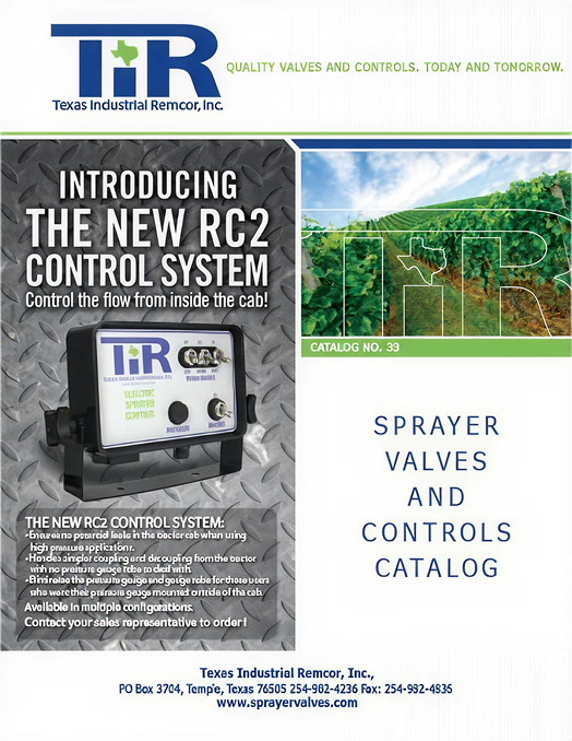 Texas Industrial Remcor has been building high‑quality sprayer valves and control systems since 1972, serving agriculture, automotive, governmental, landscaping, forestry, industrial, and leisure markets worldwide. Every E‑Chip™ valve and control component is designed and manufactured in the United States, tested before it ships, and backed by competitive pricing, rapid delivery, and a customer care team that understands the demands of the field.